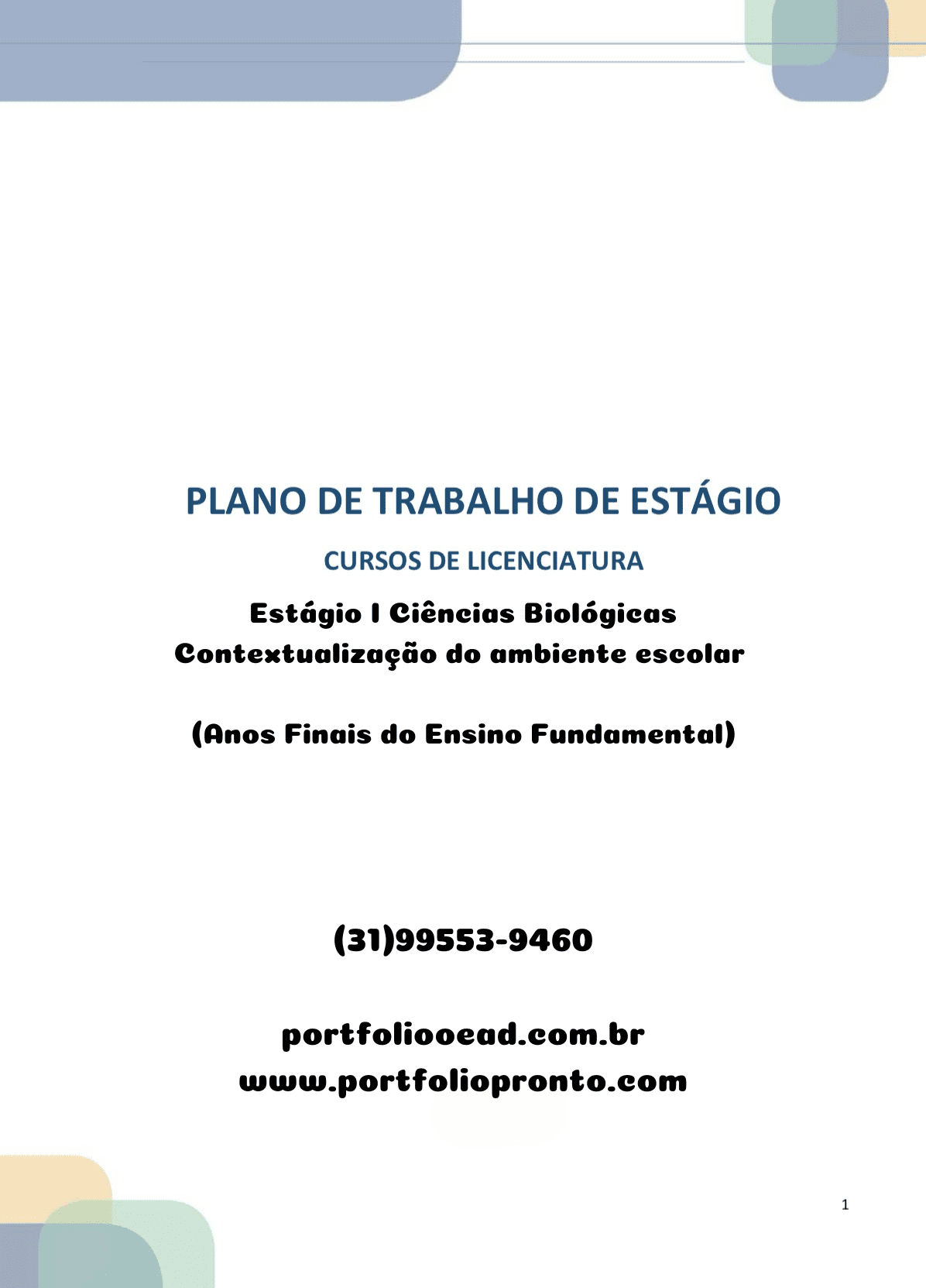 Estágio I Ciências Biológicas Contextualização do ambiente escolar