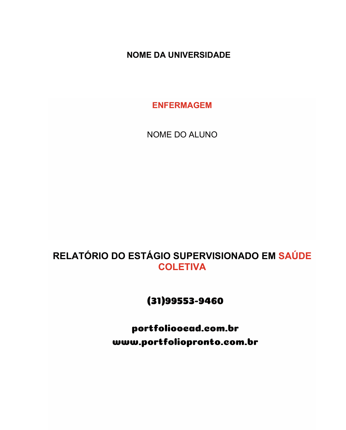 Na introdução, você deve apresentar o contexto do estágio, mencionando o curso e a ênfase em Saúde Coletiva.