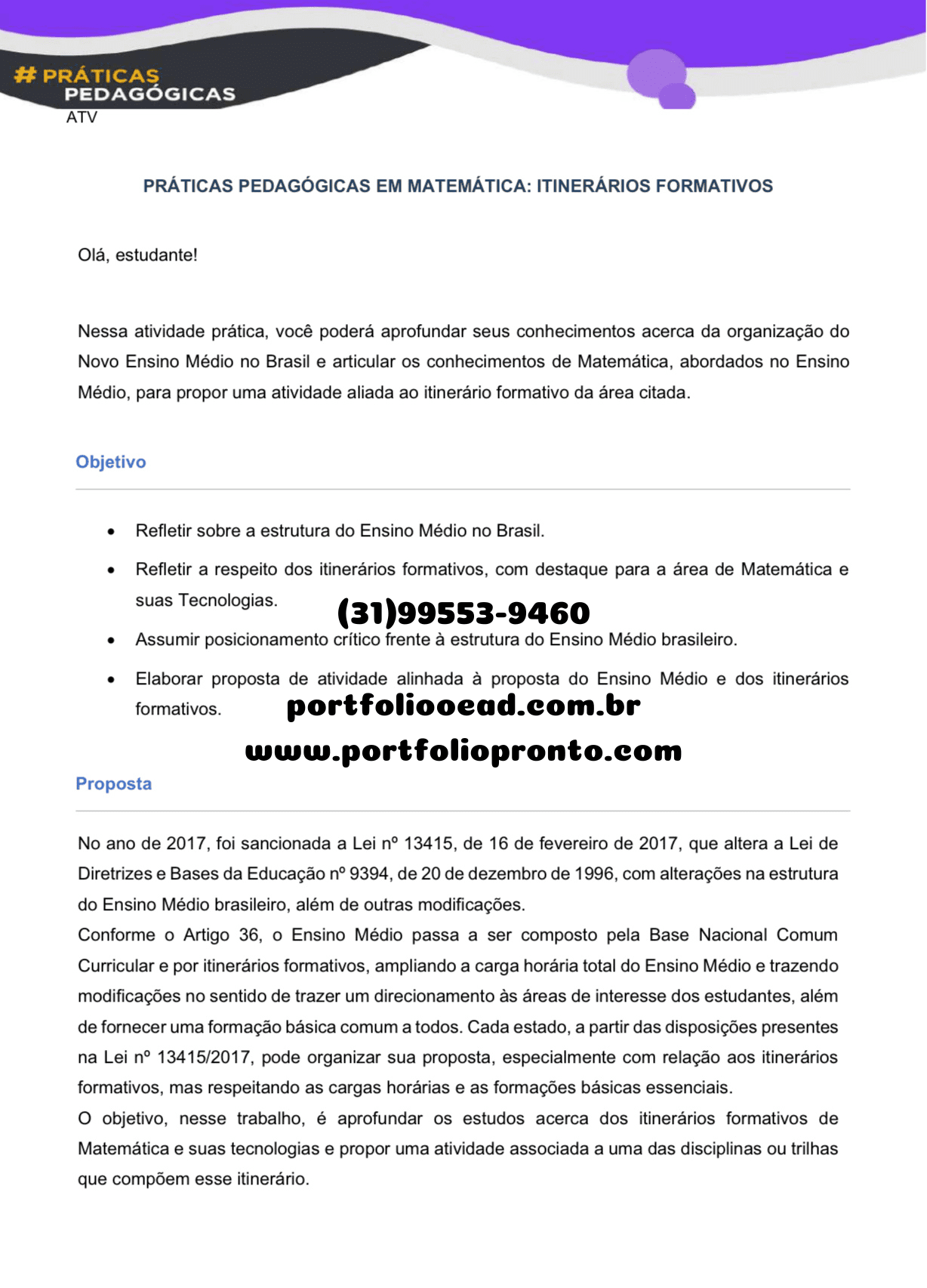 Matemática e suas tecnologias e propor uma atividade associada a uma das disciplinas ou trilhas