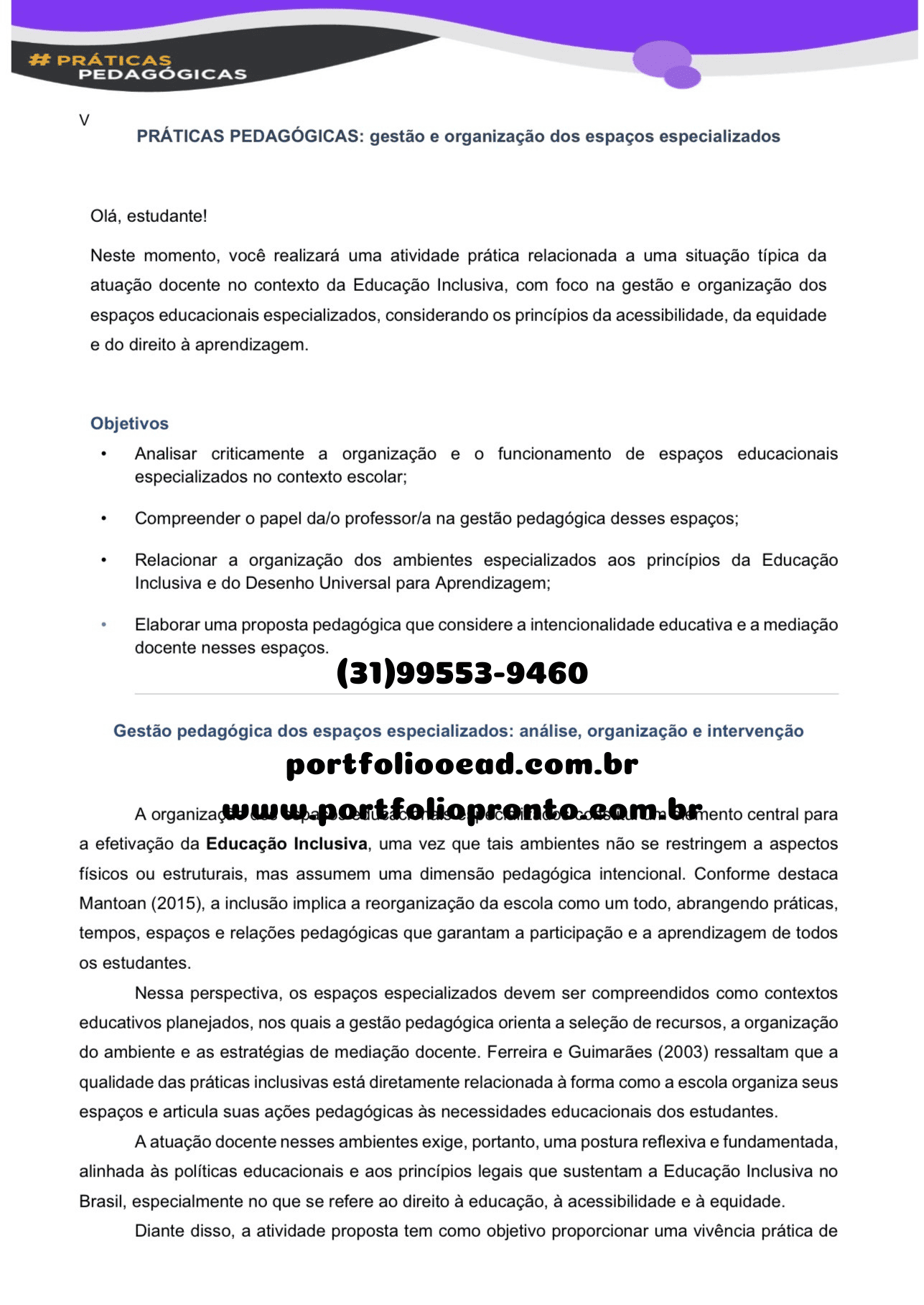 ATIVIDADE PRÁTICA análise, organização e proposição pedagógica de um espaço educacional especializado,